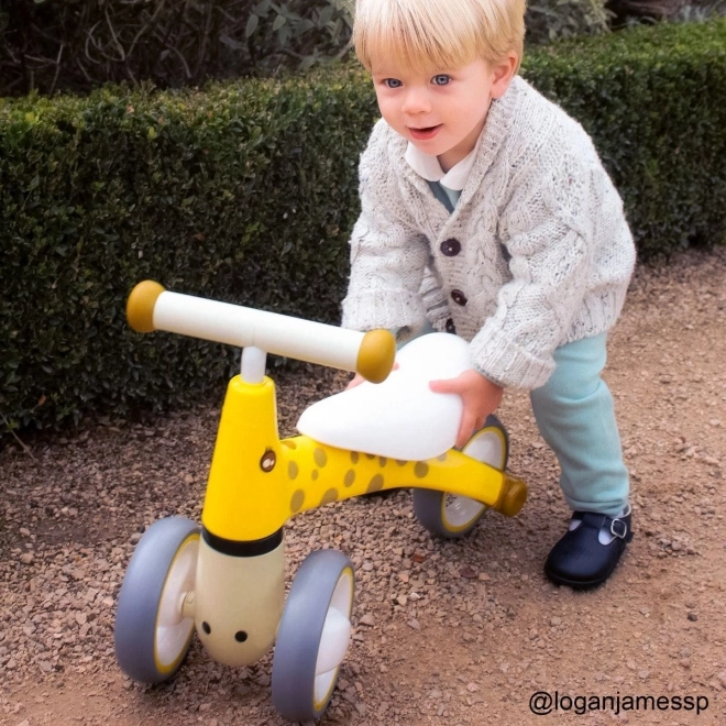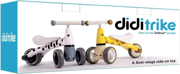 Den søde DIDICAR-løbecykel i giraffedesign hjælper børn fra 12 måneder med at udvikle balance, koordination og grovmotorik. Takket være den stabile firehjulede konstruktion, bløde håndtag og glatte hjul er kørslen komfortabel og sikker både inde og ude. Det lave sæde (24 cm) gør det nemt at stige på og øger de små rytteres selvtillid.