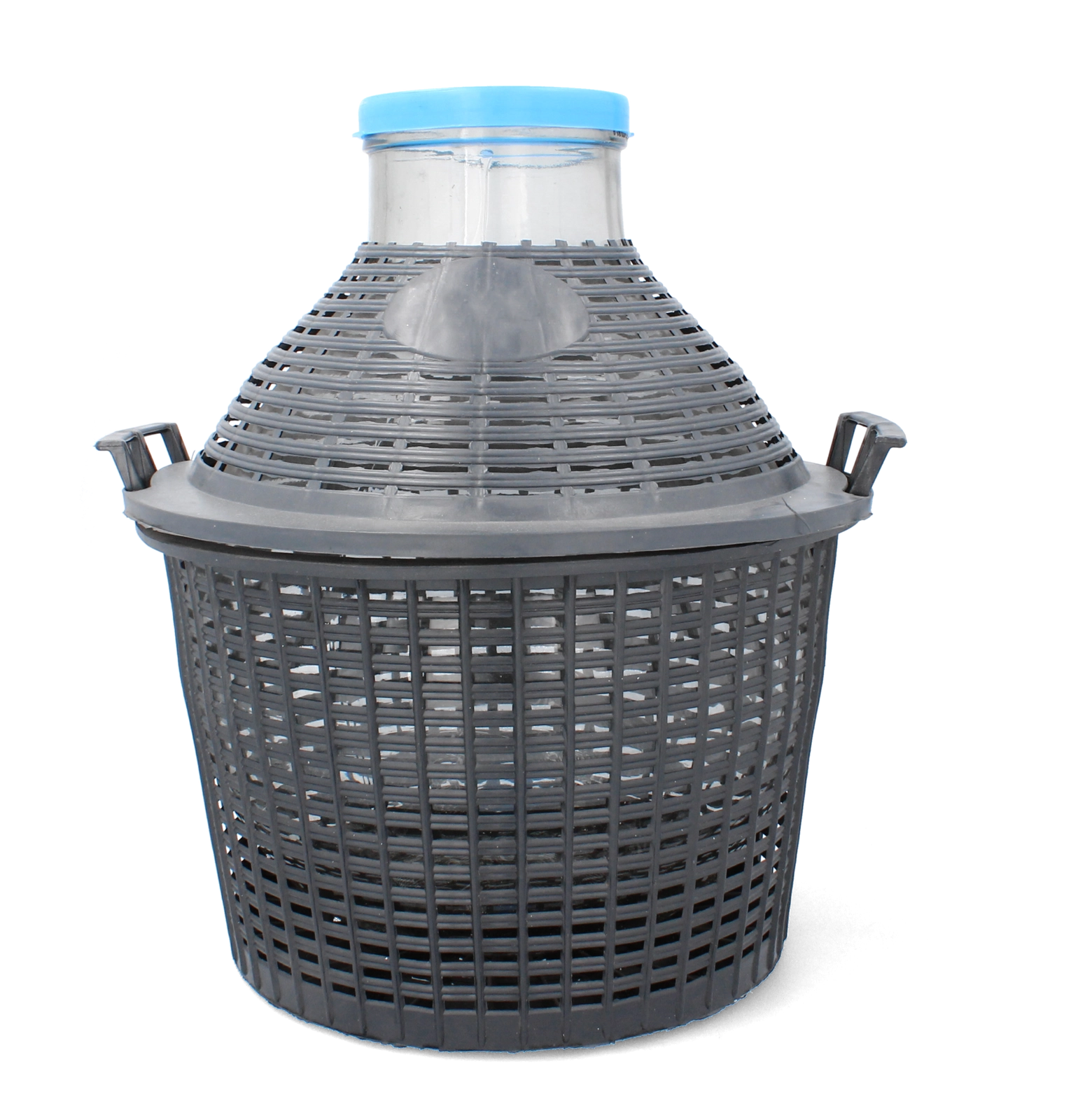 Der medfølger en plastisk beskyttelseskurv med solide håndtag til sikker transport af den tomme beholder. Når den er fuld, anbefaler vi at bære damejeannen ved at holde i bunden. For perfekt hygiejne bør beholderen vaskes grundigt og desinficeres før hver brug (fx med kaliumdisulfit).