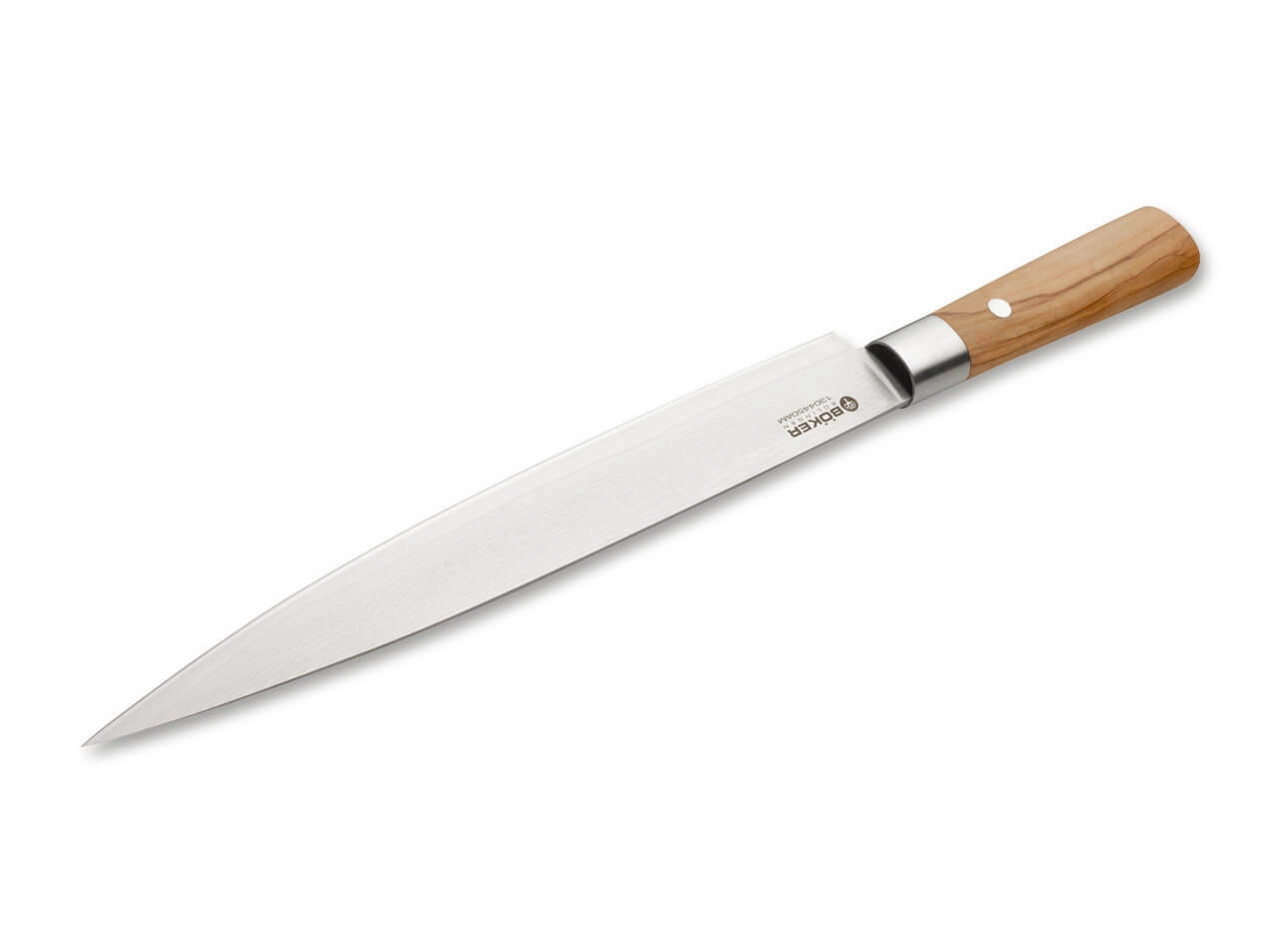 - Lang, slank klinge – ideel til udskæring af kød og fisk i tynde skiver.
