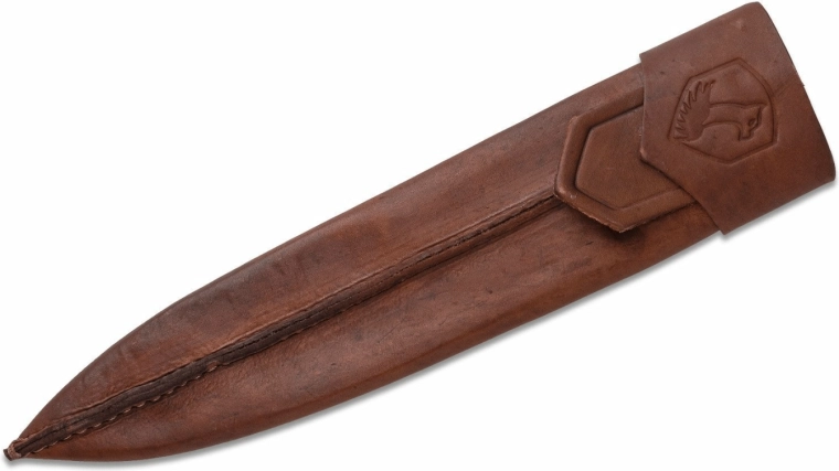Bead Blast-overfladen reducerer reflekser og beskytter klingen, mens det ergonomiske Micarta-håndtag i brun udførelse giver et sikkert greb selv under krævende forhold. Med i pakken følger en kvalitets læderskede for komfortabel og sikker bæring i felten.