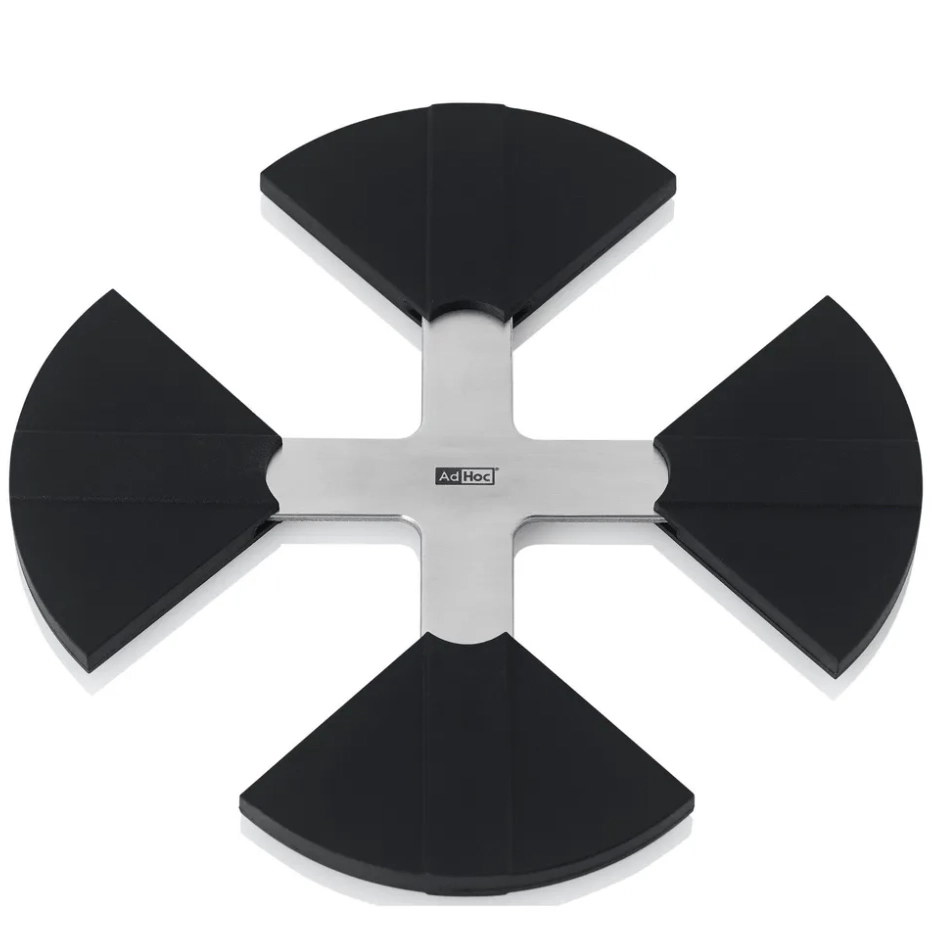 Det elegante og funktionelle grydeunderlag AdHoc Flex er designet til daglig brug. Takket være den smarte kombination af rustfrit stål og varmebestandig silikone beskytter det pålideligt overflader mod varme og ridser og ser samtidig flot ud.