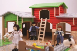 Sættet er fremstillet af kvalitetstræ fra ansvarlige kilder og er kompatibelt med ekstra tilbehør, som kan tilkøbes. Realistiske elementer som lille andedam, garage til traktor og indhegninger med bevægelige porte fremmer fantasifuld leg, historiefortælling og udvikling af finmotorikken.