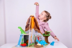 Med dette sæt vil dine børn ikke kun have det sjovt, men også lære noget om dinosaurerne og den tid, de levede i. Sammensætningen af de træelementer er enkel, og det færdige landskab inviterer til kreativ leg. Produktet understøtter udviklingen af færdigheder, fantasi, sociale evner og koordination hos børn.