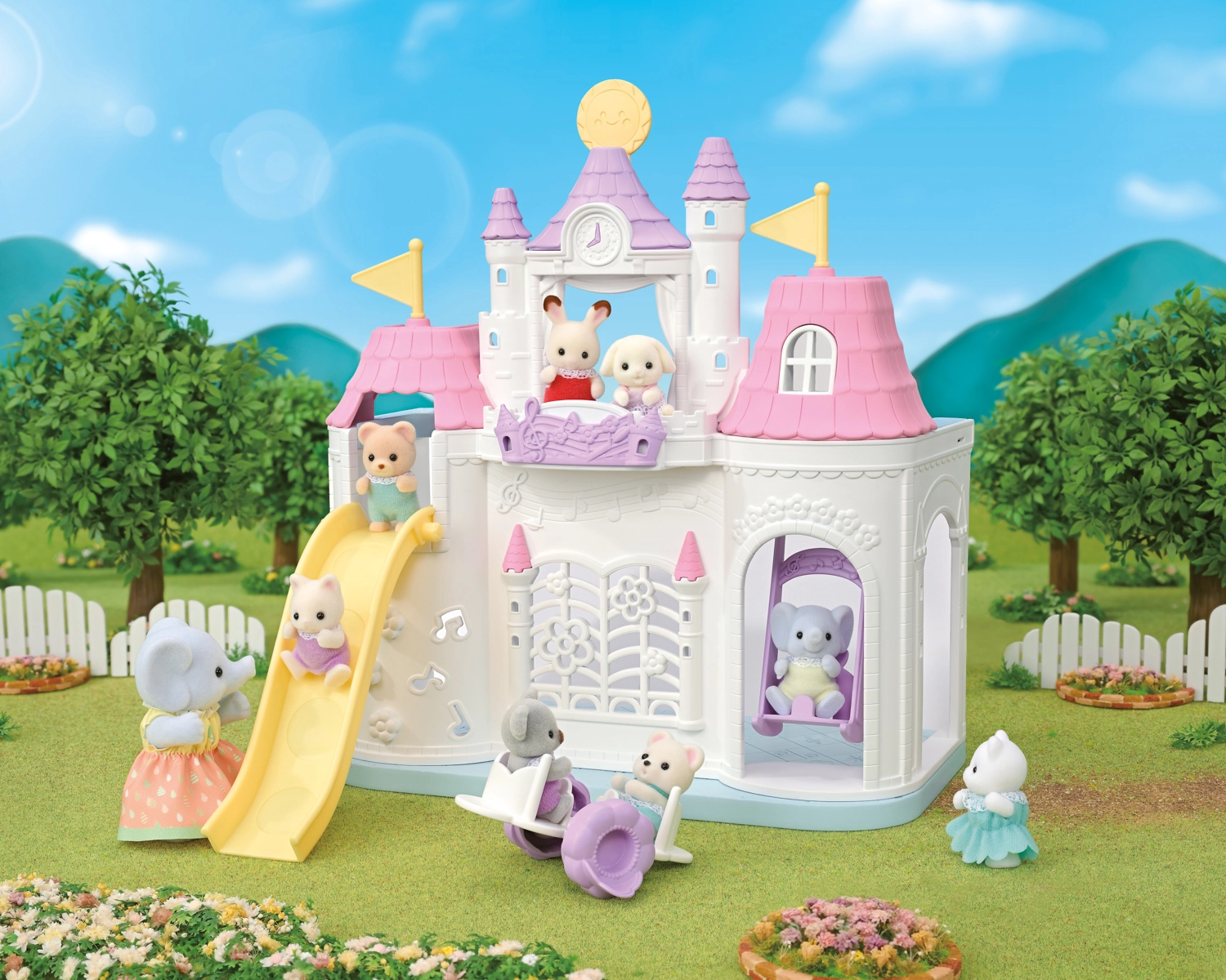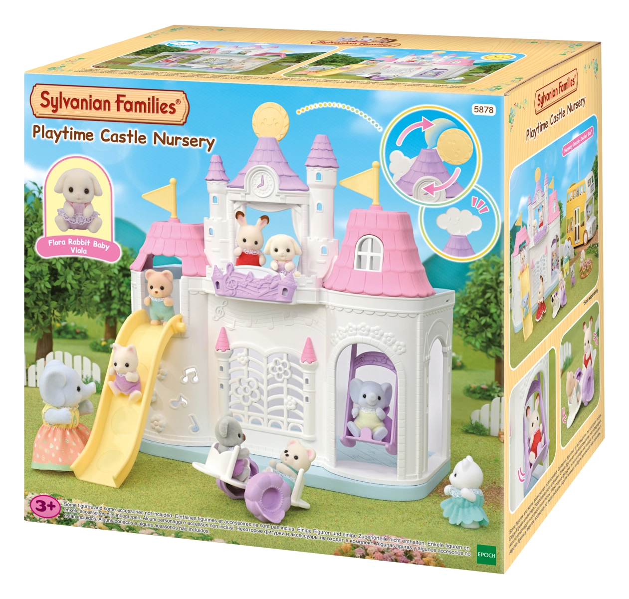 Den charmerende slotsbørnehave fra SYLVANIAN FAMILIES giver børn masser af plads til kreativ leg – med rutsjebane, gynge og vippegynge, som kan ombygges til bord og stole. Sættet indeholder en siddende babyfigur Flora kanin og et lille værelse med vejrfunktion (sol/regn), så børn kan nyde leg både inde og ude. Den omhyggelige udførelse, bevægelige lemmer og aftageligt tøj stimulerer fantasien og rollelegen.