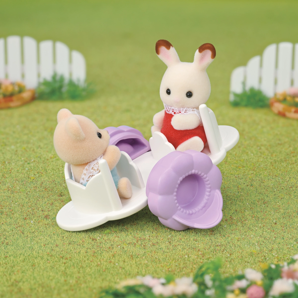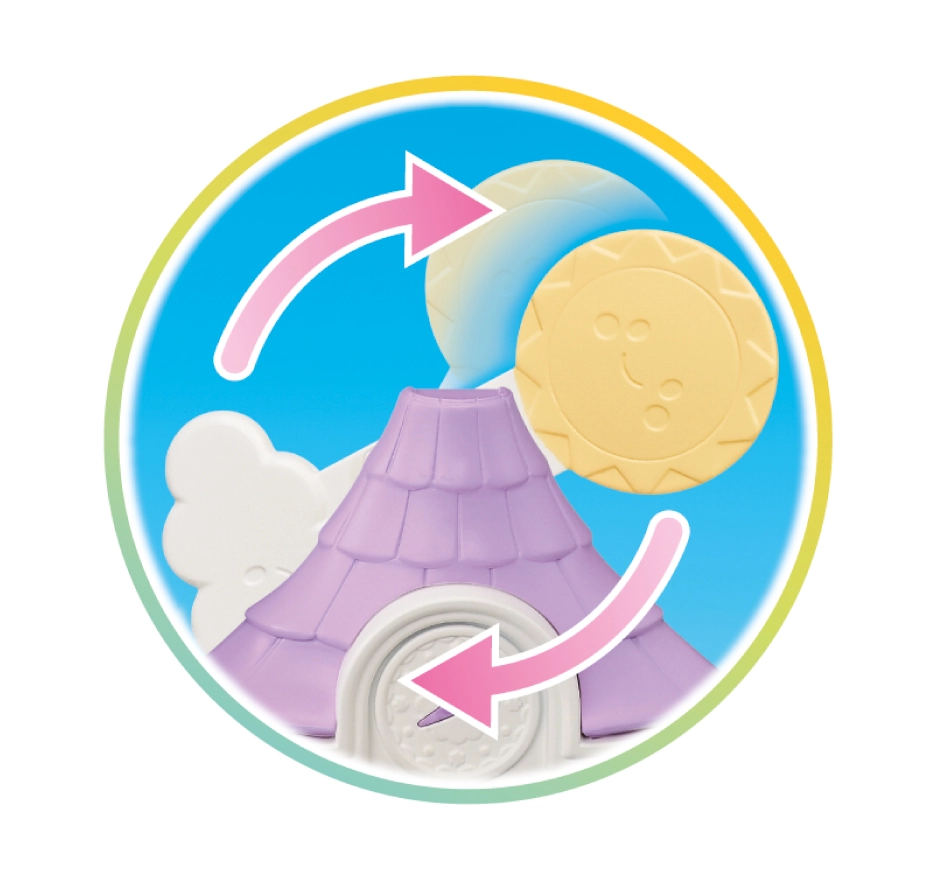 En særlig funktion er vejromskifteren: skift mellem solrige og regnfulde dage, og flyt buen på taget samt tilbehøret, så det passer til scenen. Pakken indeholder den søde babyfigur Flora kanin med bevægelige lemmer og hoved; tøjet kan tages af og skiftes.