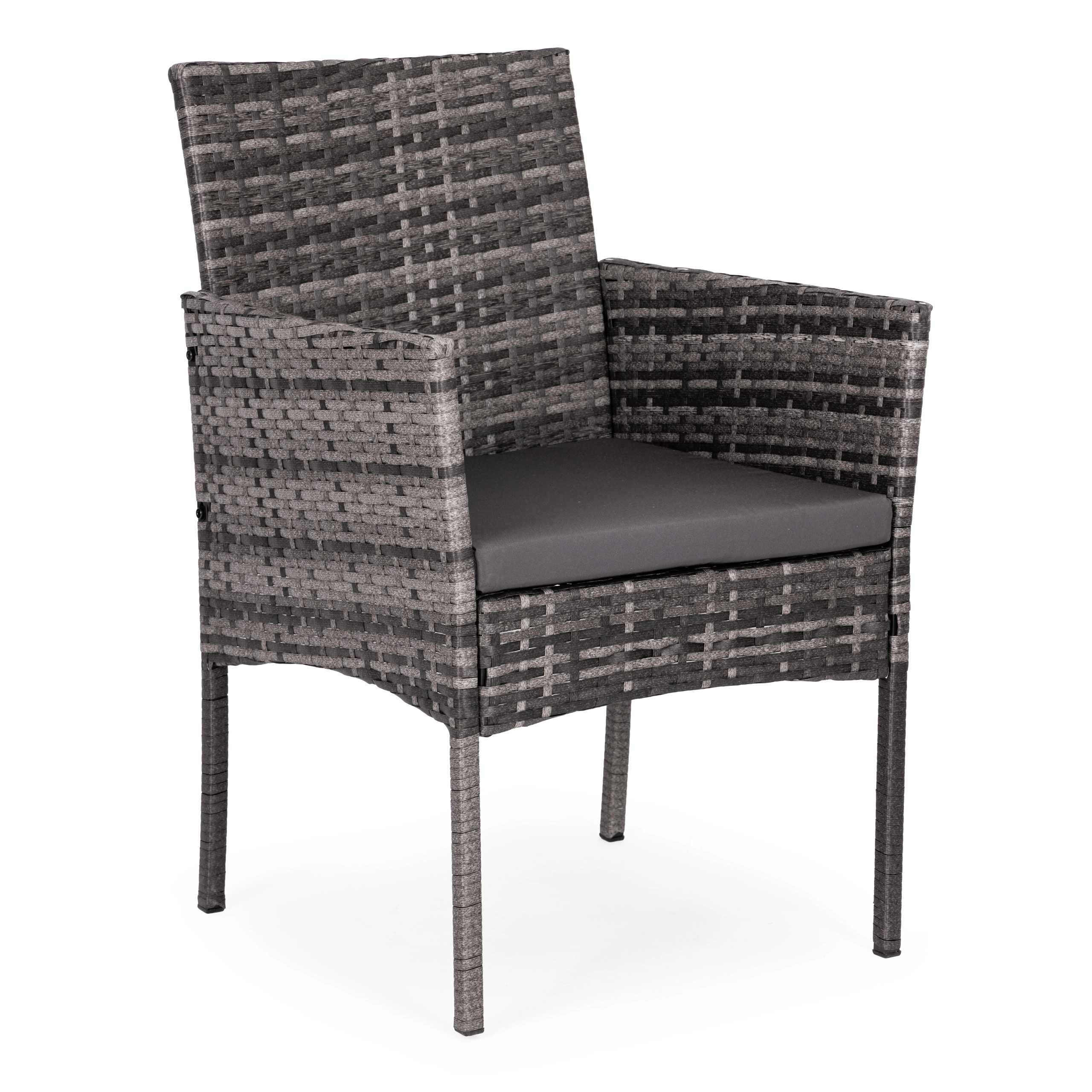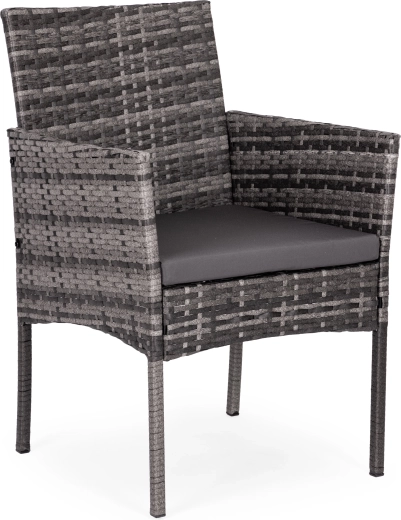 Polyrattan tåler UV-stråling, fugt og temperatursvingninger. Skridsikre fødder sikrer stabilitet og beskytter gulvoverfladen.