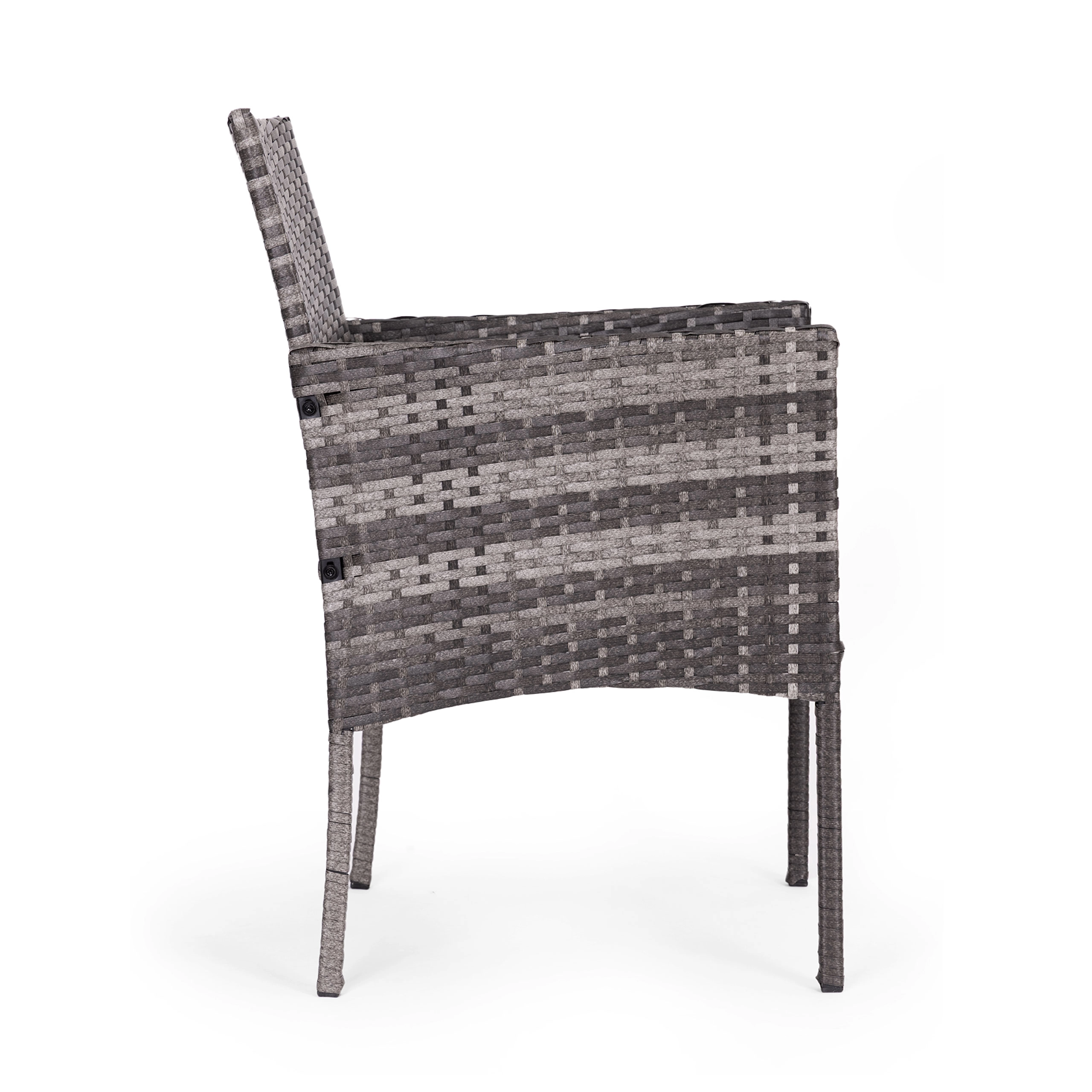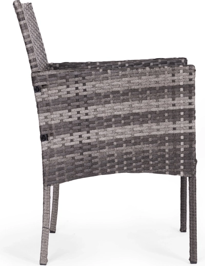 Skab en hyggelig udendørs afslapningszone. Dette kompakte sæt til 2 personer tilbyder behagelig siddeplads til morgenkaffe, aftenafslapning og møder med venner. Den robuste konstruktion i stål og syntetisk rattan sikrer lang levetid og nem vedligeholdelse.