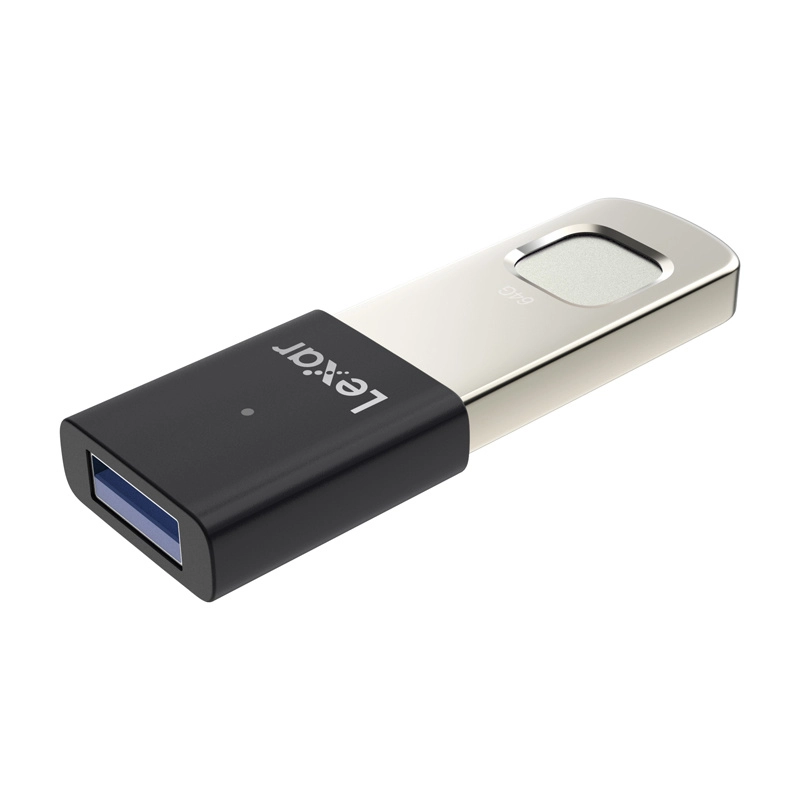 Opbevar og overfør dine data sikkert med flashdrevet Lexar Fingerprint F35 Pro 64 GB. Med den indbyggede fingeraftrykslæser låser du op på under ét sekund uden adgangskoder. Det tilbyder læsehastigheder op til 300 MB/s og skrivehastigheder op til 150 MB/s, et robust metalhus og en praktisk skydemekanisme til beskyttelse af stikket.