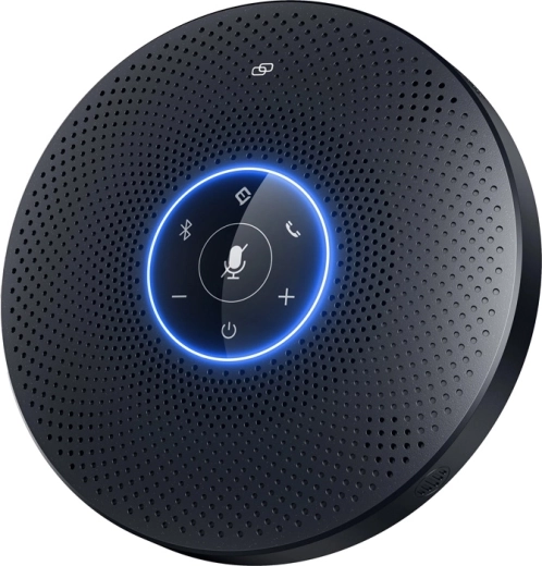 Professionel konferencehøjttaler til mellemstore og store mødelokaler med 360° stemmeoptagelse op til 5 m, fire mikrofoner, VoiceIA® støjreduktion og klar, høj lyd på 89 dB. Tilbyder USB‑C og Bluetooth 5.0, tilslutning af op til 2 enheder trådløst samtidig samt mulighed for kædning af to enheder til større møder. Plug & play‑kompatibel med Zoom, Microsoft Teams og Webex.