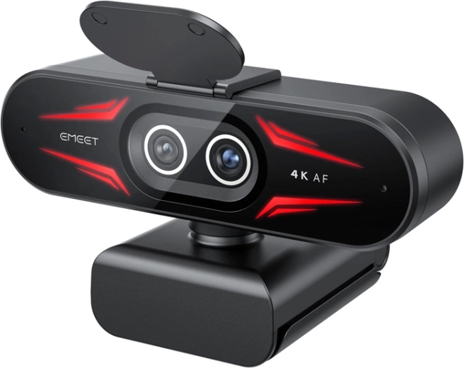 Det integrerede RGB‑lys i flere farver fremhæver scenens udtryk, mens fjernbetjeningen lader dig skifte objektiv og justere indstillinger uden at afbryde optagelsen. To kvalitetsmikrofoner med støjreduktion sikrer klar stemme selv i mere støjende omgivelser. Softwaren EMEET STUDIO giver yderligere tilpasning af billede og lyd.