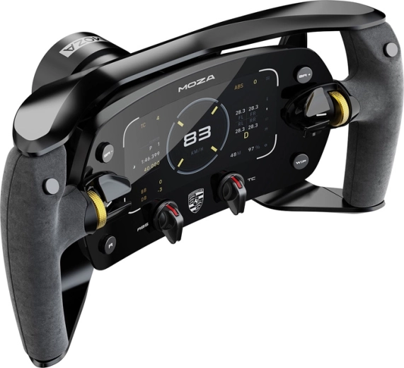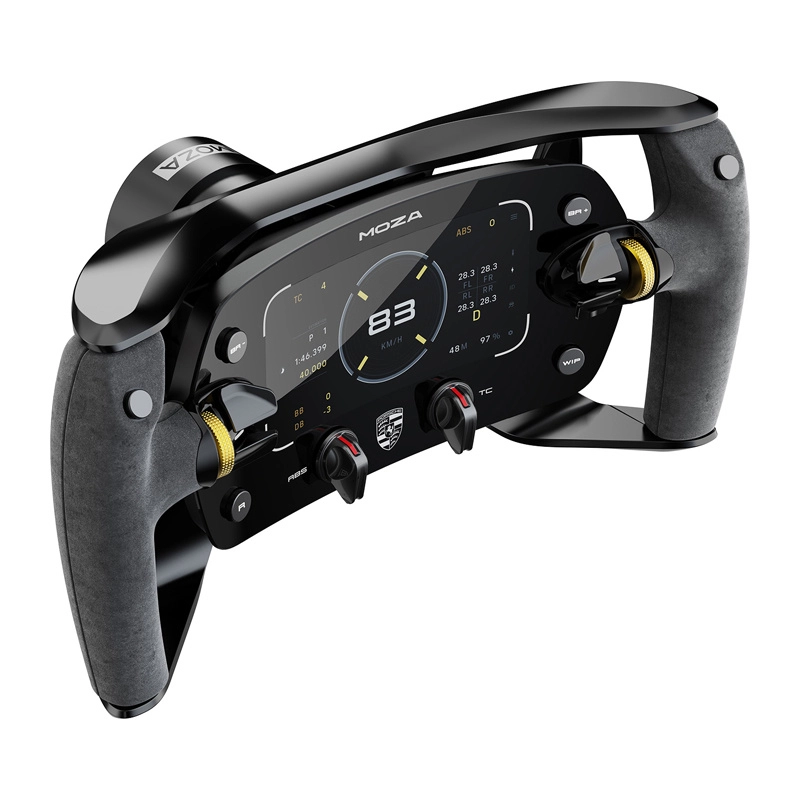 Den fuldt CNC-bearbejdede aluminiumsramme med ergonomiske greb i ruskindslignende læder giver sikkerhed og komfort under lange stints. Magnetiske padler med Hall-sensorer og støtte for enkelt- og dobbeltkobling muliggør præcise starter og gearskift. Takket være det åbne økosystem og quick release er rattet klart til alle MOZA-baser og via hub også til tredjepartsplatforme.