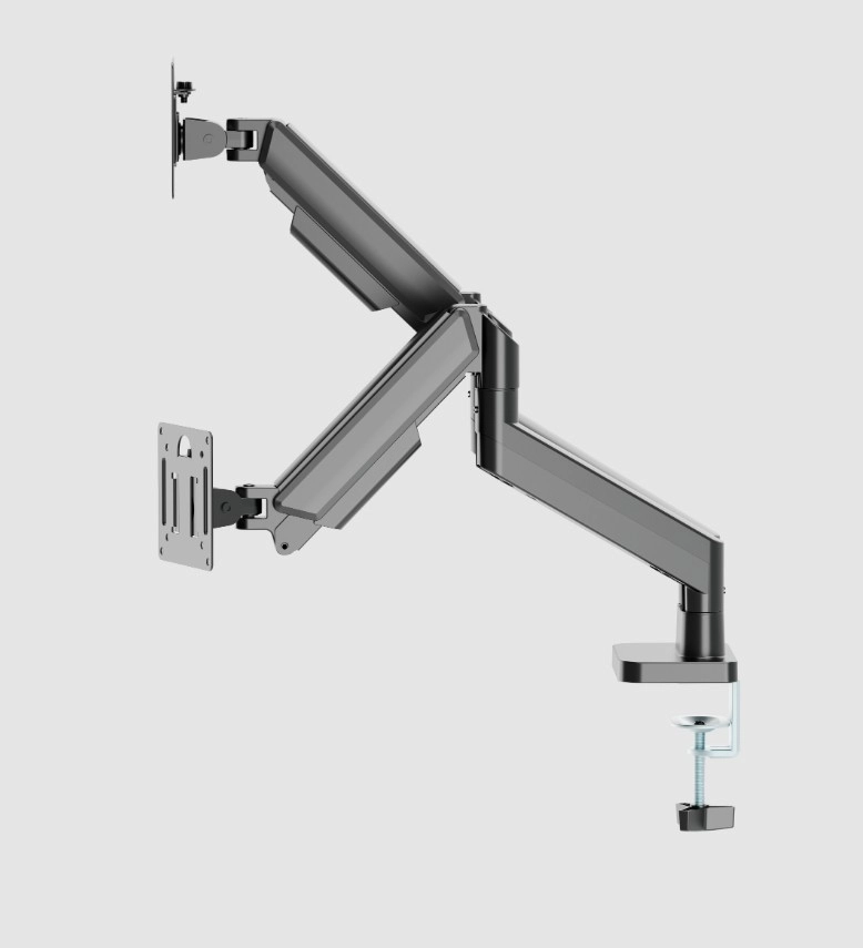 Forbedr ergonomien og frigør bordplads med en robust dobbeltarm med gasfjeder. Armene kan nemt roteres, trækkes ud og vippes, så du hurtigt kan indstille den ideelle position for dine skærme. Med mulighed for pivot (stående/liggende) tilpasser du dig let arbejde, gaming og multitasking.