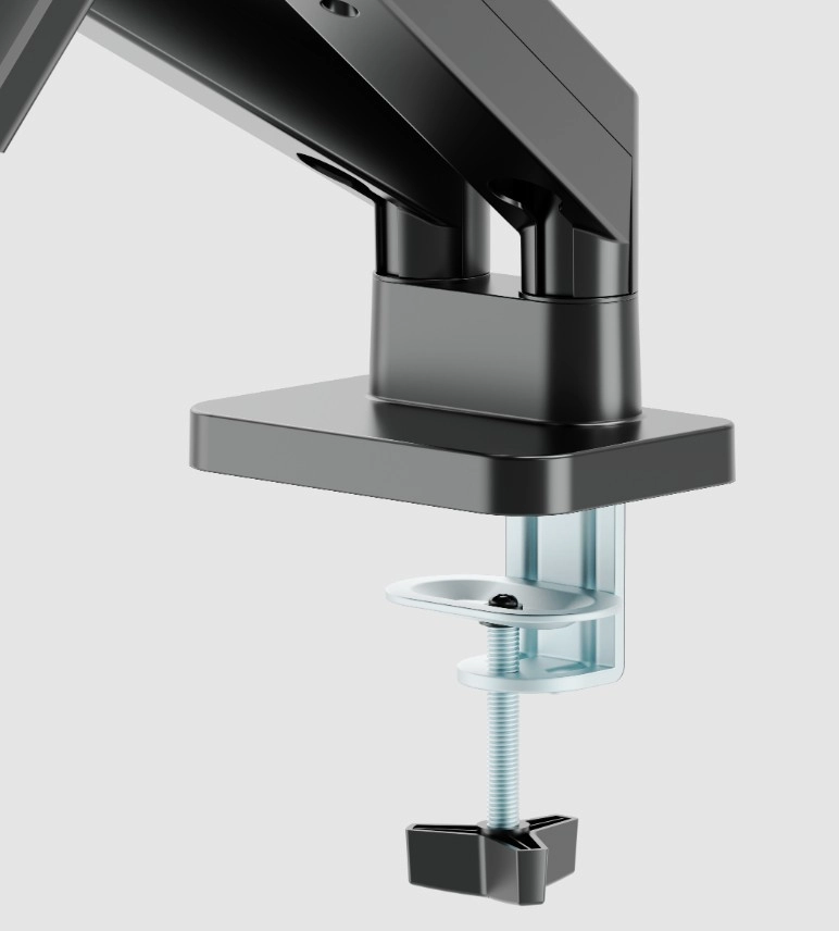 Monteringen er hurtig og sikker: kraftig bordklemme giver stabilitet, mens den aftagelige VESA-plade gør montering af skærme hurtigere. Den integrerede kabelstyring holder din arbejdsplads overskuelig og fri for kabelrod.