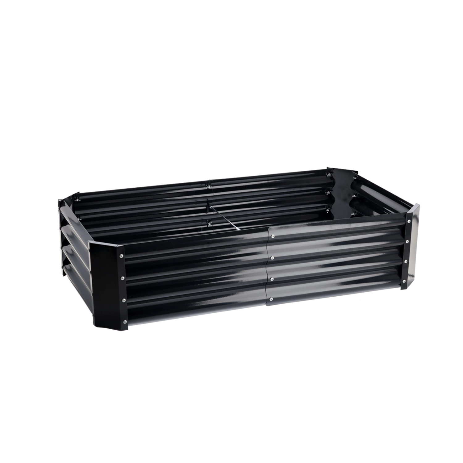Bedet er fremstillet af galvaniseret stål med pulverlakering, som modstår korrosion og skiftende vejrforhold. Stabile paneler og hjørneforstærkninger sikrer styrke i mange år.