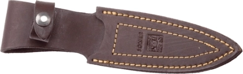 Det ergonomiske skæfte i oliventræ ligger godt i hånden og er udstyret med hul til snor, så du altid har kniven sikkert ved hånden. Der medfølger en elegant læderskede for komfortabel og sikker bæretning i bæltet.