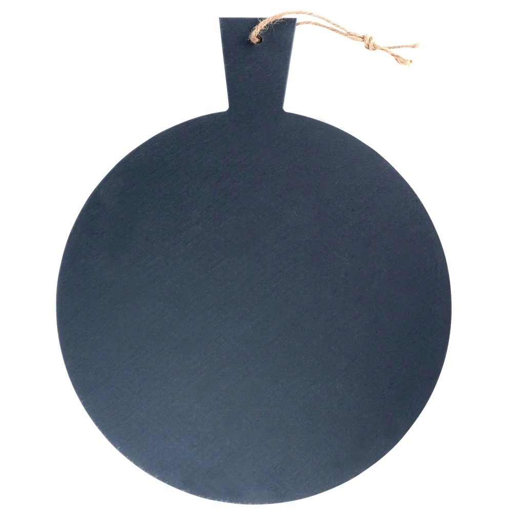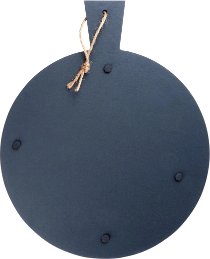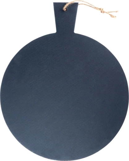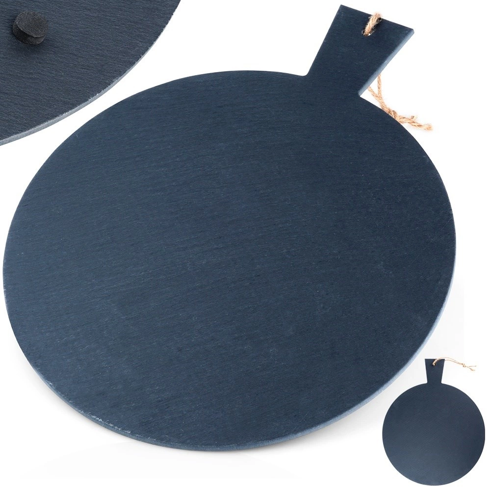 Elegant serveringsbræt af naturlig skifer med praktisk hank og ophængsloøkke. Den robuste stenoverflade er ideel til oste, charcuteri, desserter og forretter, holder temperaturen godt og forbliver stabil på bordet takket være skridsikre fødder.