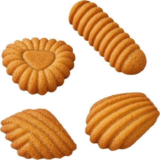 Formen har 32 huller i 4 former til hurtig tilberedning af en hel portion småkager eller praliner på én gang. Ideel til både højtidsbagning og hverdagslækkerier.