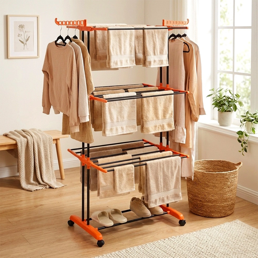 Vertikalt tørrestativ i tre niveauer