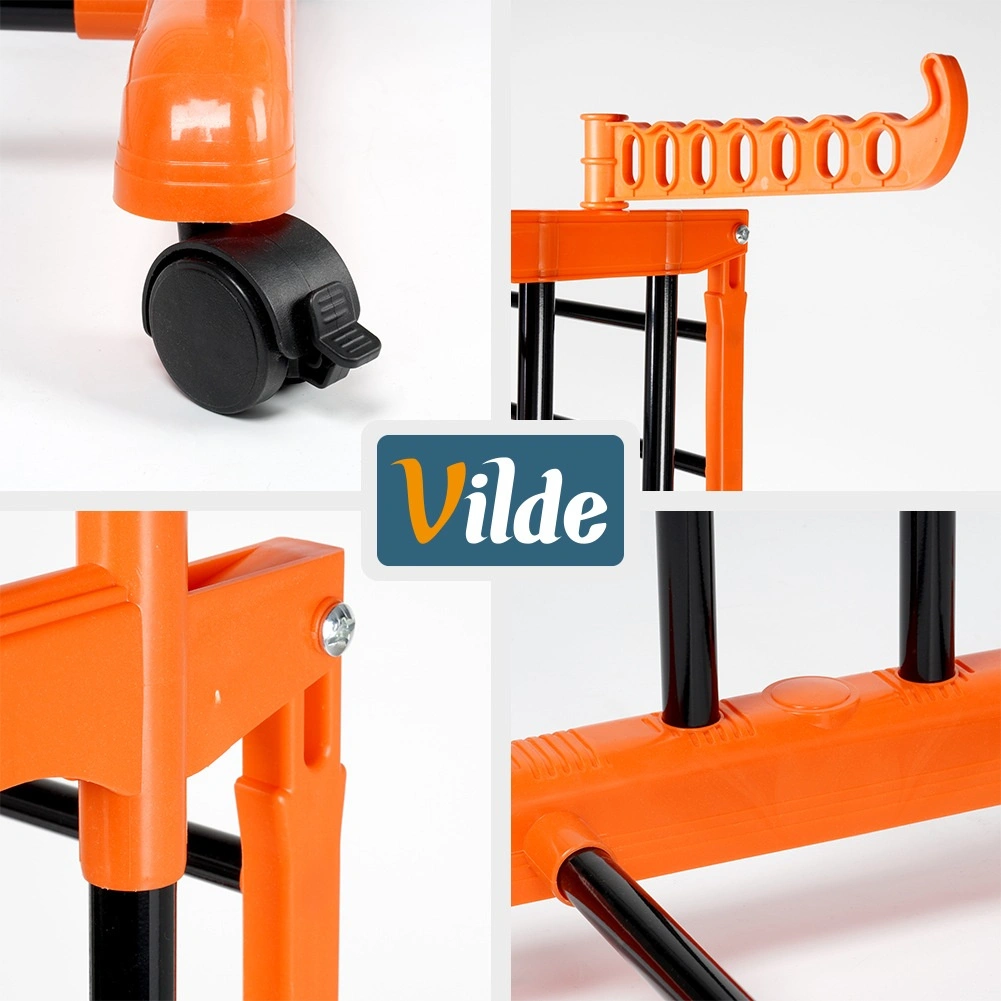 Det vertikale tørrestativ Vilde med tre etager sparer effektivt plads og gør det muligt at tørre store mængder tøj på minimal plads. De pulverlakerede metalstænger i sort er modstandsdygtige over for fugt, og de orange plastkoblinger sikrer stabilitet og lang holdbarhed. En afstand på 50 cm mellem niveauerne forbedrer luftcirkulationen og fremskynder tørringen.