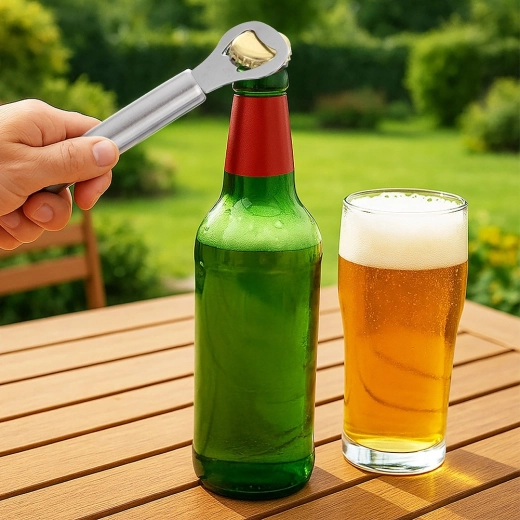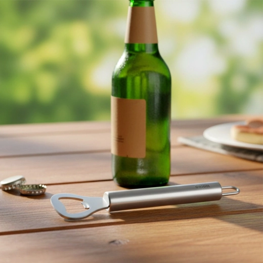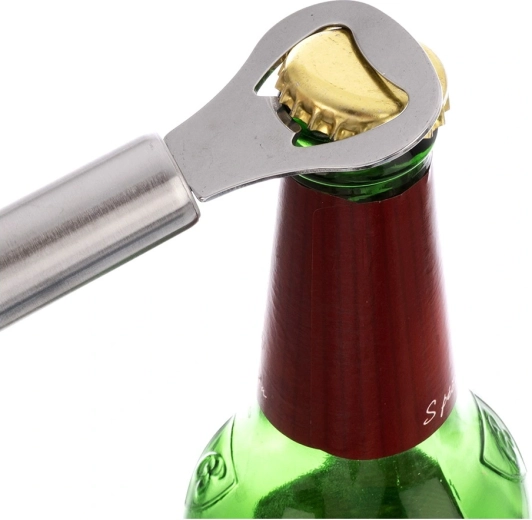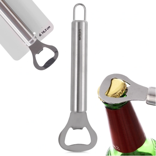 Den robuste åbner i rustfrit stål med moderne sølvfinish er designet til daglig brug. Det ergonomisk formede, cylindriske håndtag ligger godt i hånden og giver hurtig og jævn åbning af flasker uden anstrengelse. Ophængsøjet sørger for praktisk opbevaring på krog eller reling, så du altid har åbneren lige ved hånden.