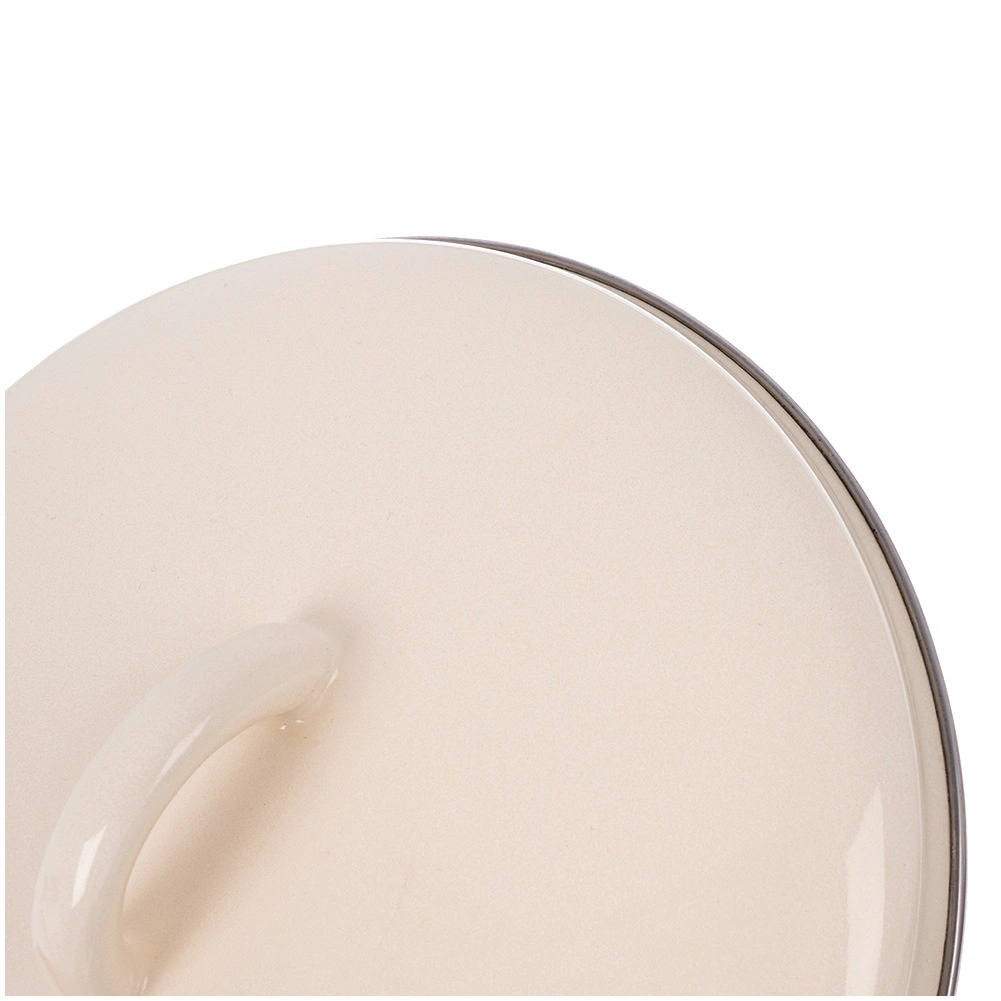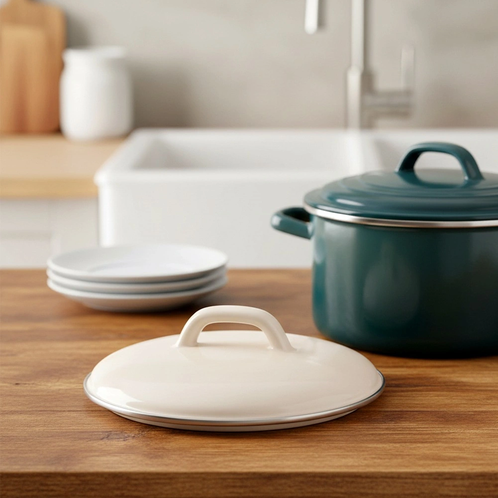 Universelt emaljelåg i elegant cremefarve, der flot supplerer køkkengrej uden medfølgende låg. Metalranden sikrer præcis pasform og øget holdbarhed. Låget egner sig til daglig madlavning, sautering, braisering og bagning, hjælper med at reducere stænk og holder retterne saftige.