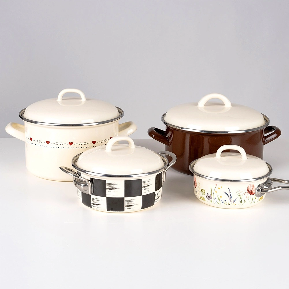 Emaljeoverfladen er traditionel og holdbar. Små produktionsmæssige ujævnheder (f.eks. minimale forhøjninger eller små variationer i dekoren) er naturlige for emaljeprodukter og påvirker ikke funktion eller kvaliteten af de tilberedte retter.