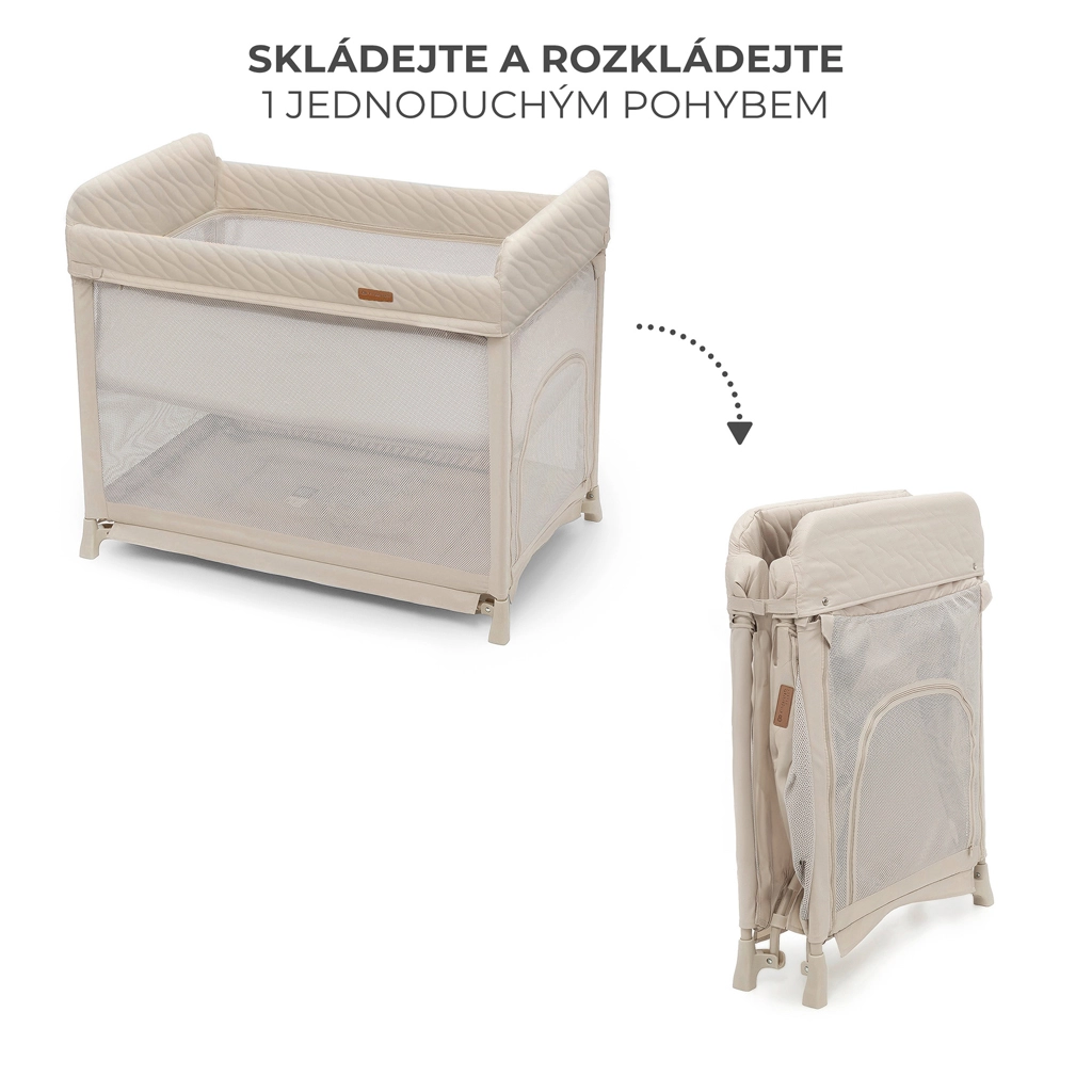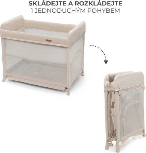 Den smarte foldemekanisme gør det muligt at åbne eller folde sengen med én enkel bevægelse. Ideel til hyppige flytninger, ture og opbevaring derhjemme.