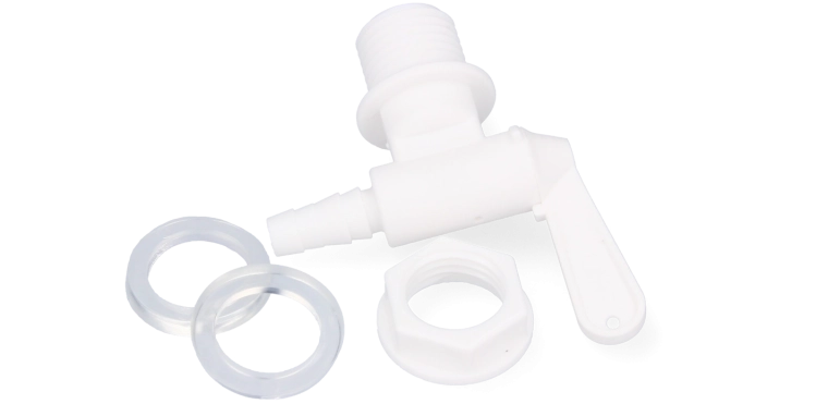 Gør aftapningen efter gæring nemmere med en robust hane med gevind på cirka 24 mm. Konstruktionen er designet til hurtig montering, sikker tætning og jævn dosering, så den færdige drik forbliver klar og uden sediment.