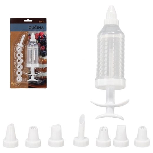 Praktisk kagedekoratør med 8 udskiftelige mundstykker er ideel til at dekorere kager, cupcakes, desserter og muffins. Den ergonomiske sprøjteform giver nem og præcis påføring af cremer og glasurer, og er derfor perfekt til begyndere såvel som erfarne konditorer. Holdbar plast og mulighed for opvask i maskine sikrer let vedligeholdelse og lang levetid.