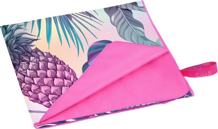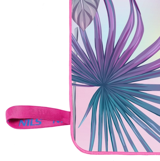 Nyd komforten overalt – NILS Camp-håndklædet i blød mikrofiber har en porøs struktur, som sikrer meget hurtig fugtabsorption og tørring. Det stilfulde tropiske design med ananas og palmeblade i nuancer af lilla, turkis og rosa giver dit udstyr et friskt look.