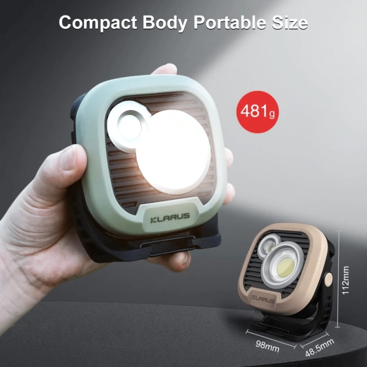 Den kompakte, genopladelige arbejds- og campinglygte Klarus WL3 leverer lysstrøm på 1500 lm, trinløs indstilling af hvid farvetemperatur (2700–6500 K) samt lysstyrke, rød COB LED til diskret belysning, højkapacitetsbatteri 13.500 mAh med powerbank‑funktion og IPX5 beskyttelse. Opladning via USB‑C, 180° drejehoved og flere monteringsmuligheder for maksimal fleksibilitet.