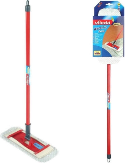 Den flade børnemoppe VILEDA fra mærket KLEIN er et fremragende valg for små rengøringsentusiaster. Den er lavet under officiel VILEDA-licens og er derfor en realistisk kopi af en ægte moppe. Den lette konstruktion og omhyggelige udførelse sikrer behagelig brug og lang holdbarhed.