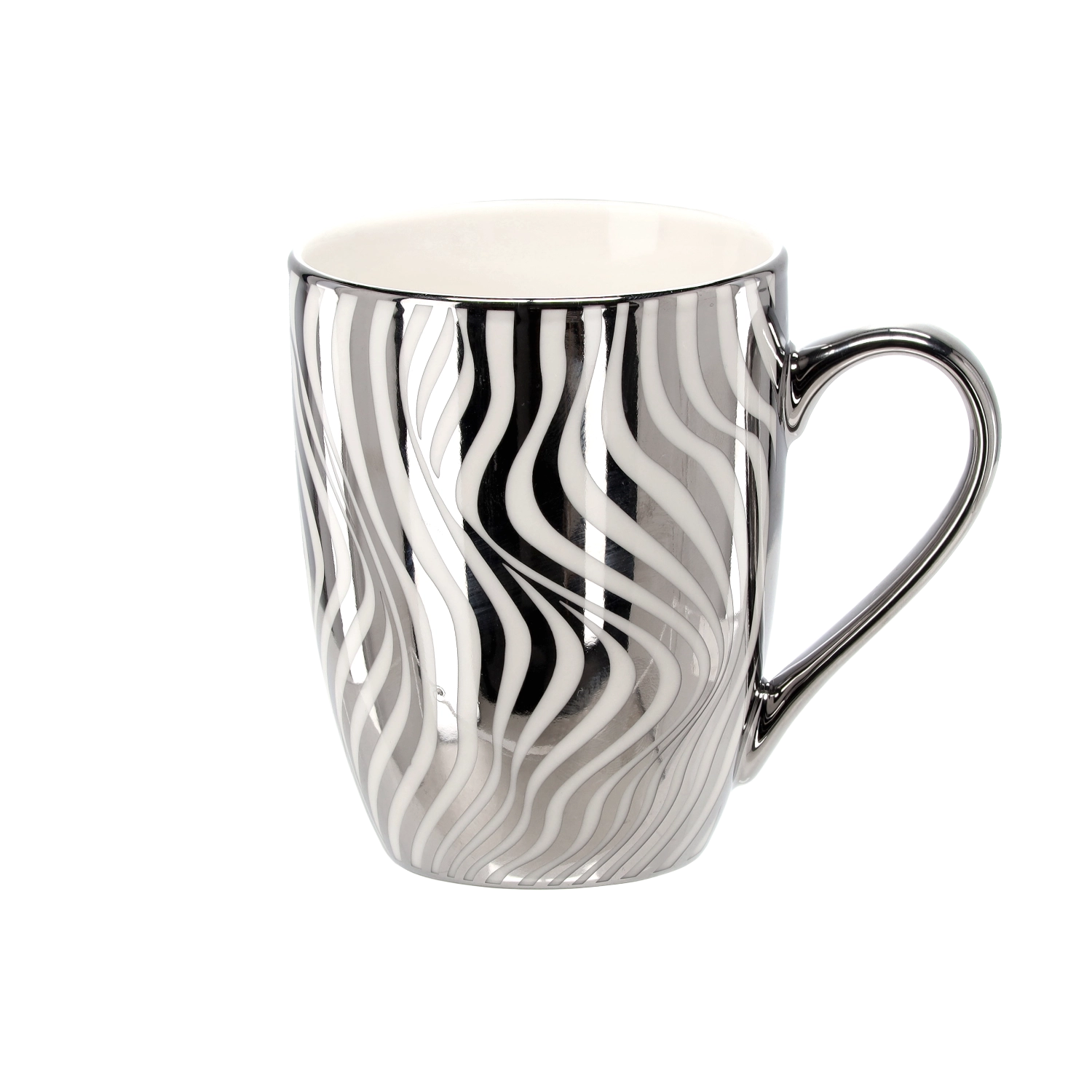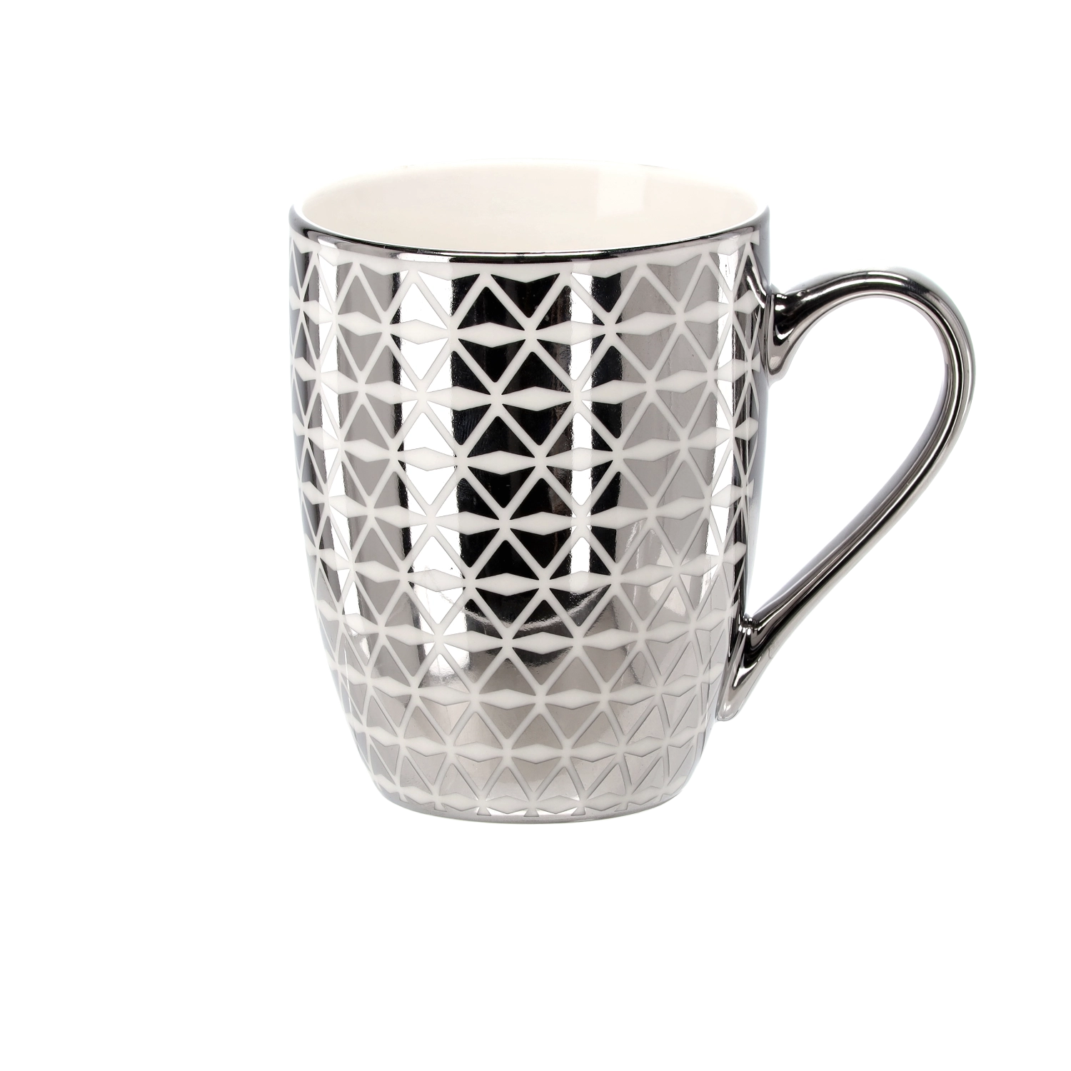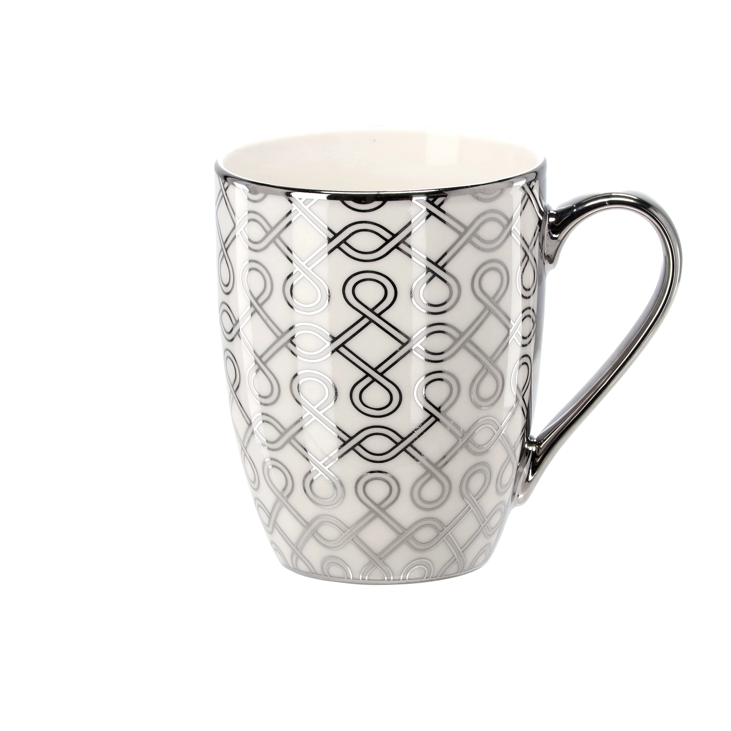 Nyd dine yndlingsvarme drikke med et krus, der kombinerer et elegant sølv-hvidt look og kvalitetsporcelæn. De forskellige stilfulde mønstre – fra diamantformer til bølgede linjer – giver ethvert køkken eller kontor personlighed og smag.