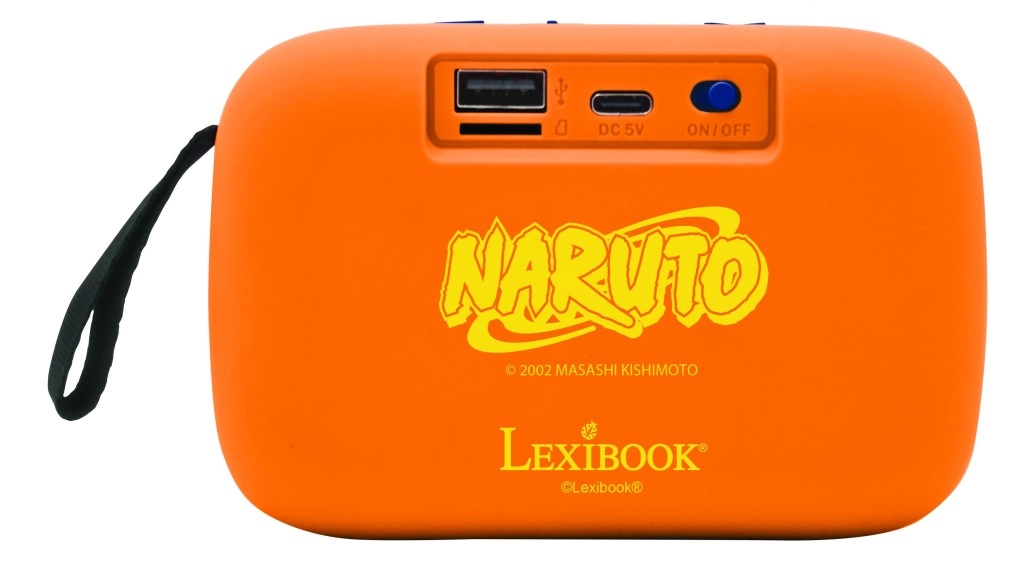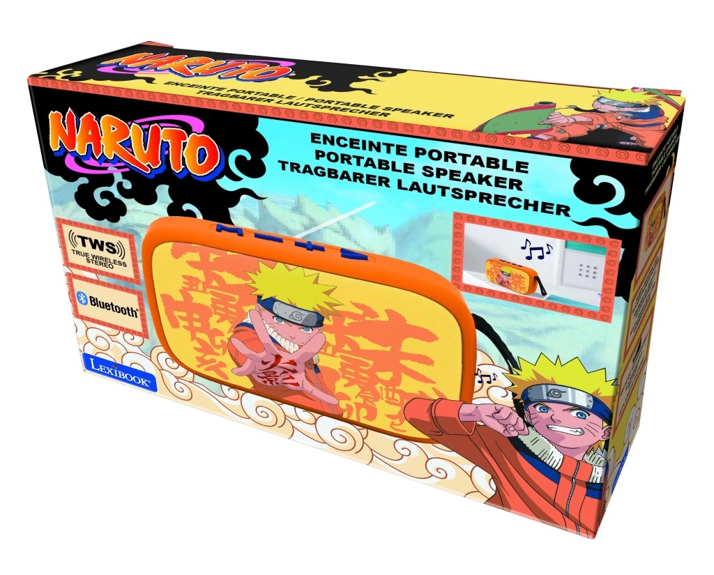 Stilfuld bærbar Lexibook-højttaler med NARUTO-motiv, der tilbyder trådløs Bluetooth-forbindelse, mulighed for TWS-parring af to højttalere og robust udførelse med stofoverflade. Takket være nem betjening, praktisk bærestrop og genopladeligt batteri er den ideel til både børn og unge anime-fans – hjemme og på farten.