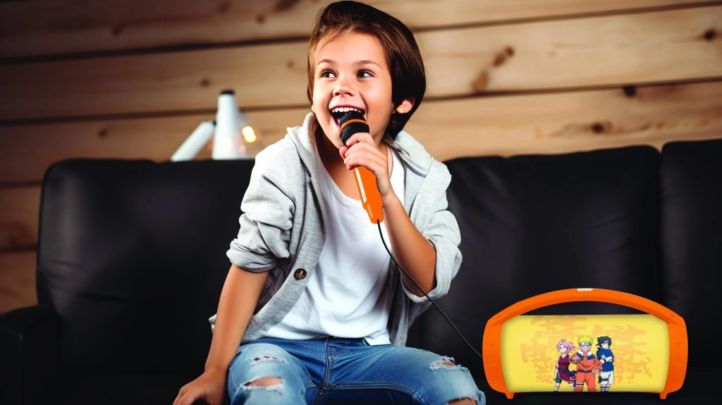 Nyd yndlingssange og karaoke med børnene takket være Lexibook NARUTO-højttaleren med motiv af Naruto, Sakura og Sasuke. Det stilfulde orange look, det praktiske håndtag og den intuitive betjening på siden gør den til et ideelt valg til hjemmeunderholdning og rejser. LED-lyseffekter skaber den rette stemning til fester og sammenkomster med venner.