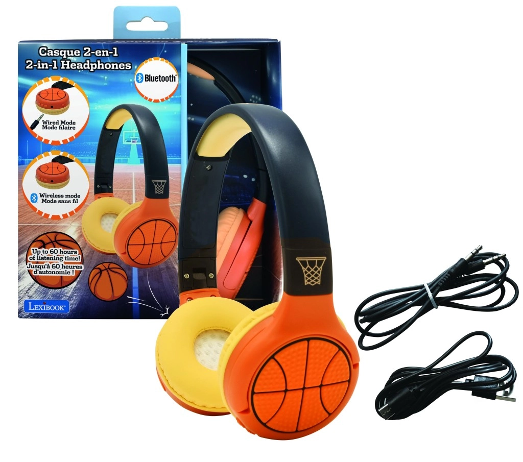 Giv børnene en sjov og sikker lytteoplevelse. LEXIBOOK børnehovedtelefoner med basketbalmotiv kombinerer et attraktivt design med praktiske funktioner til hverdagsbrug. Takket være Bluetooth spiller de trådløst, og når det er nødvendigt, tilsluttes blot det medfølgende kabel med 3,5 mm jack.