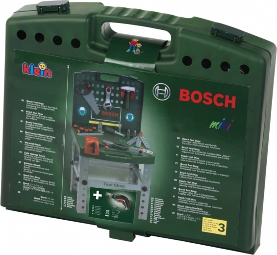 Dette praktiske, bærbare BOSCH-værksted kan nemt foldes sammen og opbevares i kufferten, så du kan tage det med overalt. Det indeholder alt, hvad du skal bruge til små reparationer og masser af sjov: sav, hammer, skruetrækker, tang, justerbar skruenøgle, skruestik, søm, skruer og lister.