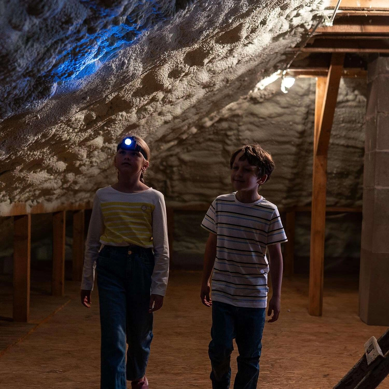 Den elastiske rem justeres nemt til barnets hovedstørrelse. Pandelygten sidder godt fast og er behagelig at have på.