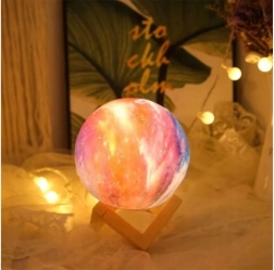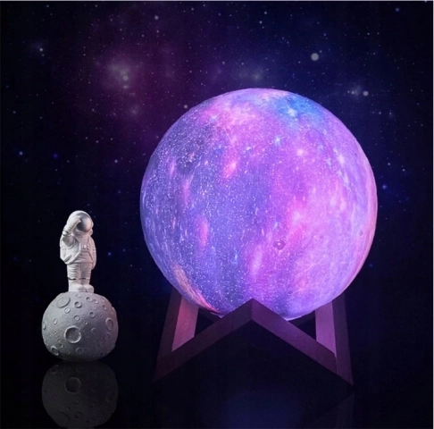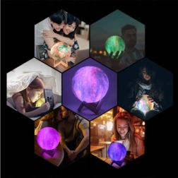 Lad dig betage af det blide lys, der skaber en afslappende og hyggelig atmosfære. Månelampen med en diameter på 15 cm er lavet ved hjælp af 3D‑print, så den realistisk viser kratere og overfladens ujævnheder. Takket være USB‑opladning er brugen bekvem og uden behov for batteriskift.