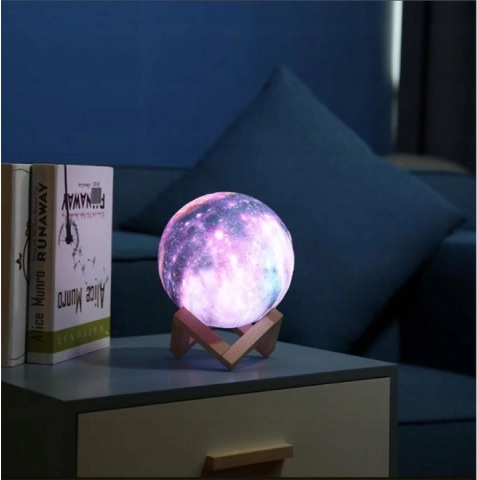 En designet nattelampe i form af en måne bringer en magisk atmosfære ind i hjemmet. Takket være 3D‑printteknologi efterligner den troværdigt kratere og overfladestruktur. Den tilbyder 16 lysfarver, 4 lysstyrkeniveauer og fjernbetjent samt touch‑styring. Den er opladelig via USB og passer perfekt i soveværelse, børneværelse og stue.