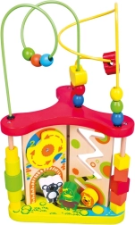 Denne multifunktionelle træaktivitetslabyrint fra Bino er designet til både at underholde og udvikle børn. Perler på metaltråde, dreje- og skydeelementer samt illustrerede dyremotiver vækker nysgerrighed, koncentration og hånd–øje-koordination.