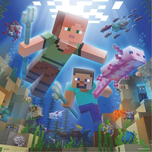 Ravensburger tilbyder puslespil med Minecraft tema, som byder på høj kvalitet og holdbare konstruktioner til gentagen leg. Hver af de 3x49 brikker er omhyggeligt designet med levende farver og detaljerede motiver.