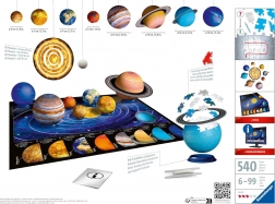 Takket være den høje kvalitet fra RAVENSBURGER er samlingen flydende, underholdende og lærerig. De færdige planeter kan du hænge op eller udstille på en stander og skabe en effektfuld model af rummet derhjemme. Der medfølger også en dobbeltsidet plakat med informationer (tekst på fremmedsprog) og en billedvejledning for en nem start.