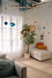 Samle 8 planeter i forskellige størrelser og farver, tilføj ringe, Månen, og vis dem på standere eller hæng dem op.