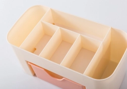 Fantastisk til at organisere makeup, smykker og andre småting, denne organisator er udstyret med en skuffe og seks rum i forskellige størrelser.