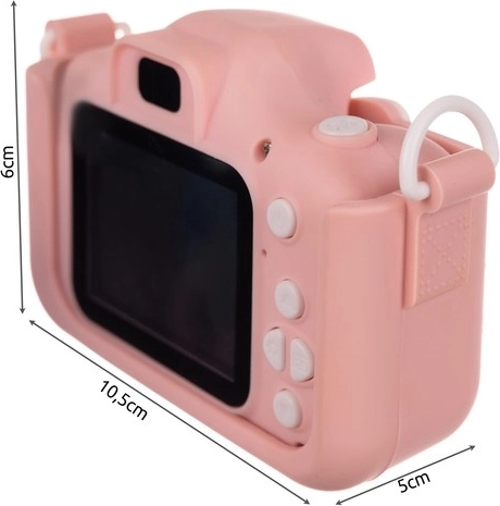 Det silikonecover beskytter enheden mod stød og gør den samtidig til et sødt tilbehør. Takket være det medfølgende 16 GB-kort kan børn fotografere og filme med det samme efter udpakning.