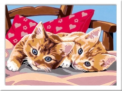Oplev Ravensburger CreArt maling efter tal med motiv af to kælne killinger i formatet 24 × 18 cm. I sættet finder du alt, hvad du behøver – lærred med nummereret skabelon, akrylmaling, pensel, stander og ramme. Takket være nummererede felter er processen nem selv for begyndere, og den udvikler fingerfærdighed, koncentration og giver skaberglæde med et professionelt udseende resultat.