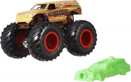 De legendariske Hot Wheels Monster Trucks i skala 1:64 leverer maksimal action. Trykstøbt metalkarosseri, robust chassiskonstruktion og ekstra store hjul klarer stød, hop og at knuse modstandere. Hver truck har sit unikke navn, ydelse og stil at “bryde igennem” med – ideel til spændende dueller og samlerpassion.