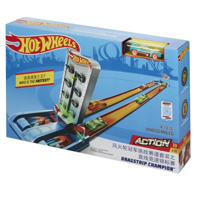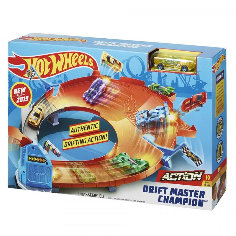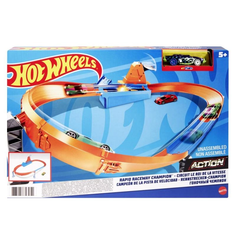 Oplev et adrenalinfyldt racersæt, hvor unge kørere dyster i 3 discipliner: en driftbane med sidelancering, parallelle løb med nedtælling og opkørsel med kraftig affyring. Takket være det modulære system kan sættet kombineres med andre HOT WHEELS-baner for at skabe din egen storslåede fartverden.