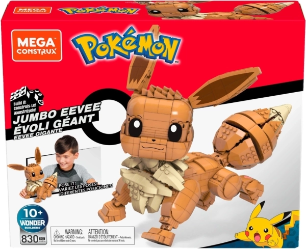 Nyd både byggeri og udstilling med en næsten livagtig version af din yndlings-Pokémon. Jumbo Eevee fra MEGA (tidligere Mega Bloks) består af 824 præcist designede dele og måler cirka 28 cm, når den er samlet. Takket være den gennemtænkte konstruktion er modellen fuldt poserbar – du kan sætte den ned, stille den op og justere den i dynamiske kampstillinger.
